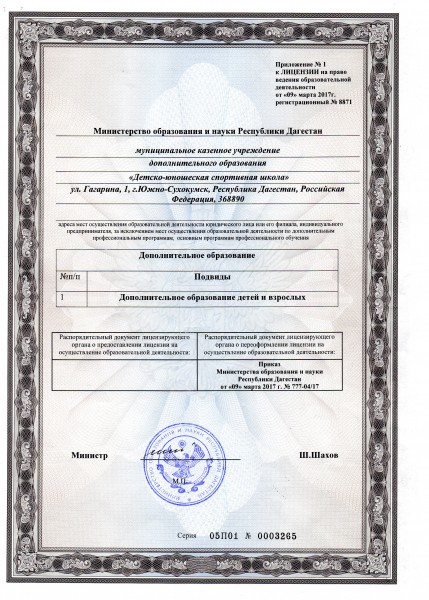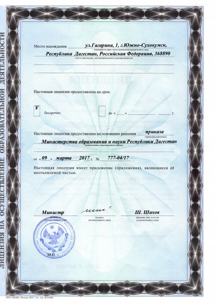 | Адрес местонахождения образовательной организации* | 368890, Республика Дагестан, город Южно-Сухокумск, улица Гагарина 1 |